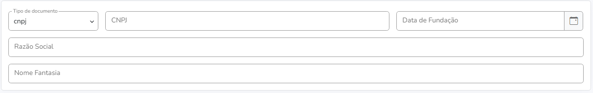 Preencher o CNPJ / CPF, data de fundação, razão social e nome fantasia.