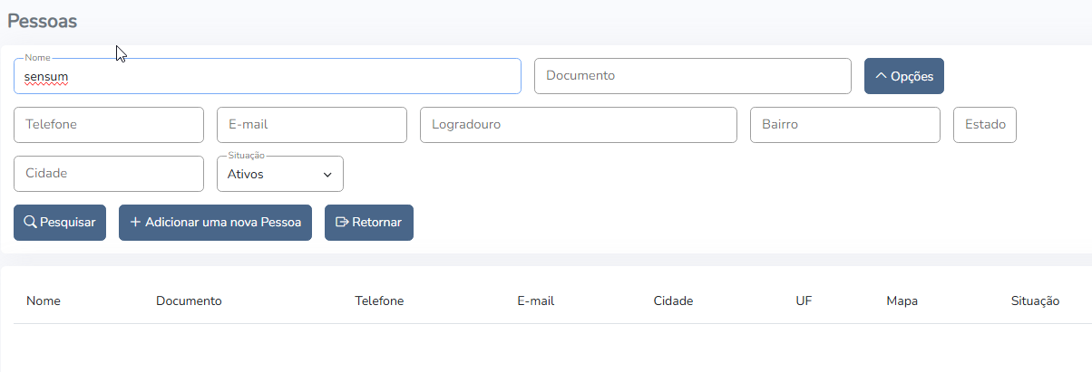 Cadastro de Pessoas (Clientes, Fornecedores, Prestadores de Serviços)
