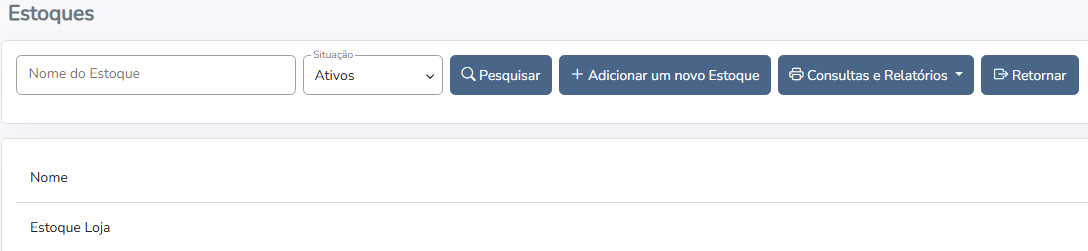 O sistema vem parametrizado com um estoque, deste forma, será necessário cadastrar outros somente quando a empresa tiver necessidade.