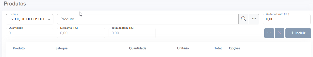 Clicar na opção +Incluir para incluir o produto na grade de item do orçamento.