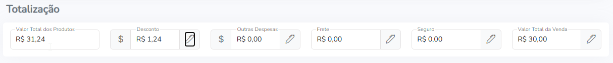 No quadro de totalização consegue conferir o valor do pedido e informações como desconto.