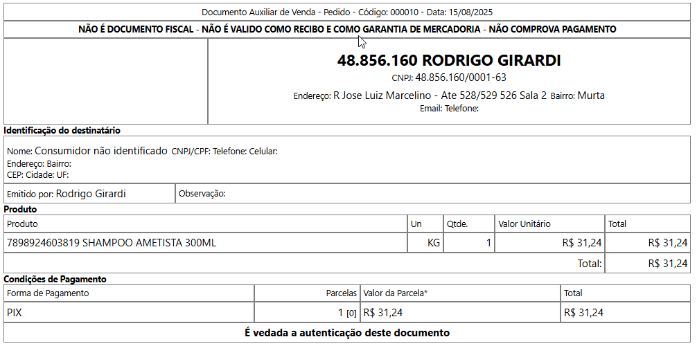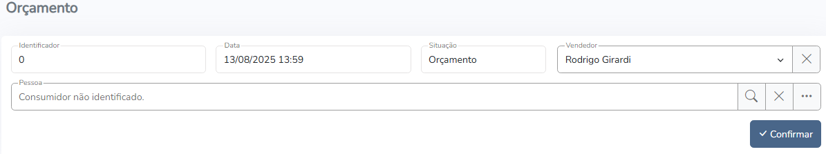 Caso a venda seja para cliente consumidor final (sem cadastro na empresa), clicar em Confirmar.